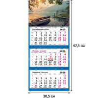 Календарь настенный 3-х блочный 2026 У воды 30.5×67.5 см