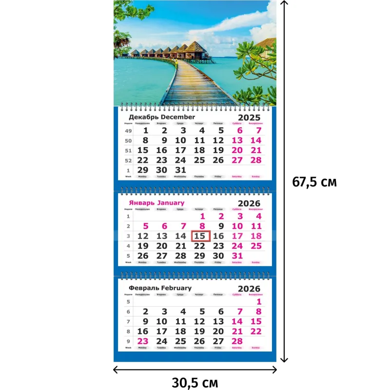 Календарь настенный 3-х блочный 2026 Трио Стандарт, Хижины на воде, 305х675