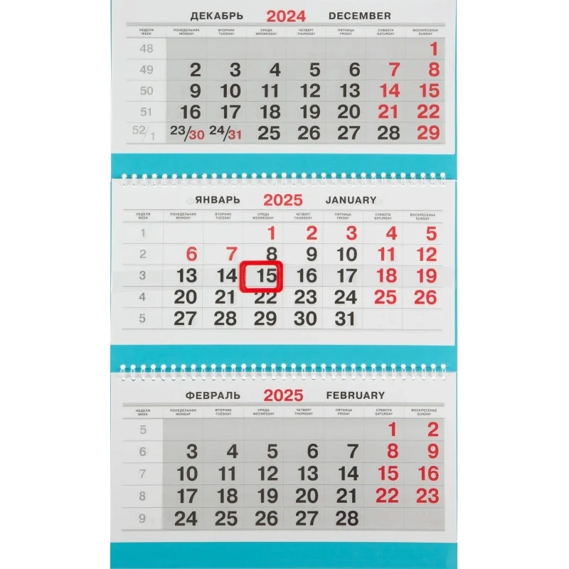 Календарь настен, 2025, 295х710, Трио Стандарт, Голубая лагуна,3спир,80г/м2
