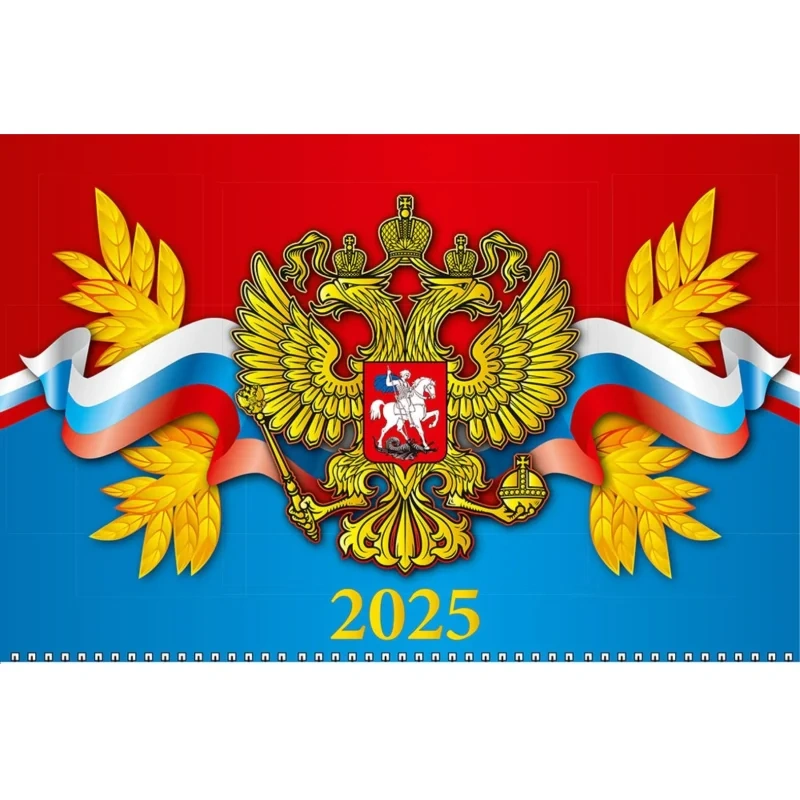 Календарь настен 3-х бл,2025,Госсимволика,офс,310х680,КБ05-25 Настенный квартальный трехблочный календарь на 2025 год с курсором, формат 310х680 мм, в индивидуальной упаковке (европакет с подвесом). Состоит из красочного постера на мелованном картоне плотностью 250 г/кв.м, покрытого глянцевым УФ-лаком, трех календарных блоков с нумерацией недель на офсетной бумаге плотностью 60 г/кв.м, запечатанных в 2 краски, и полноцветных красочных подложек (мелованный картон плотностью 200 г/кв.м, покрытый глянцевым УФ-лаком). Календарь скреплен тремя металлическими гребнями, вешается на стену при помощи кольца (пикколо)