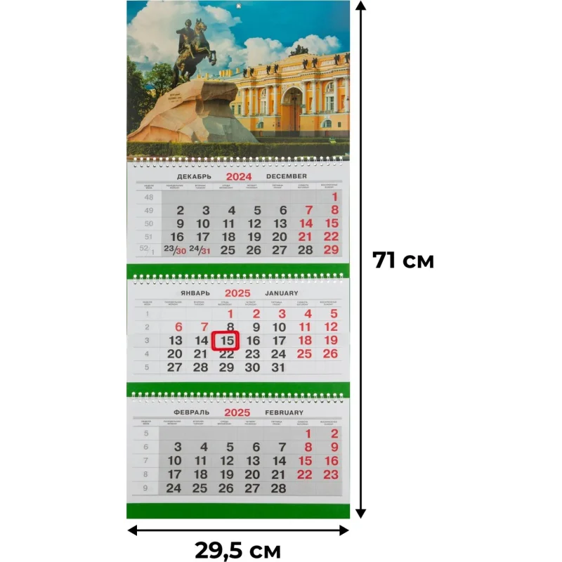 Календарь настенный 2025 Трио Стандарт 295х710, 80г/м2 Медный всадник К316