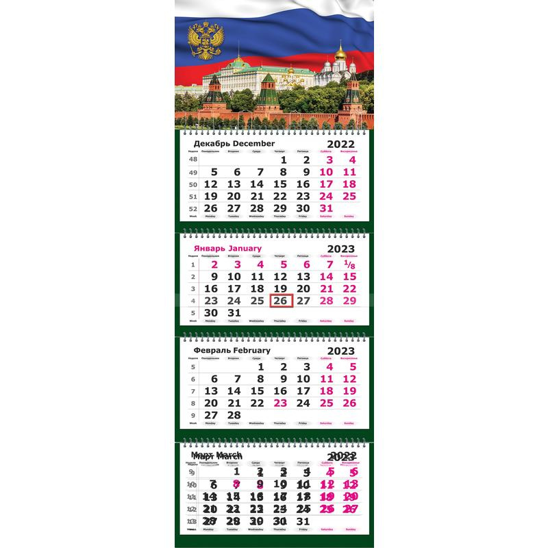 Календарь четырехблочный на 2023 год «Госсимволика» размером 305?835 мм состоит из красочного постера и четырех блоков на подложках