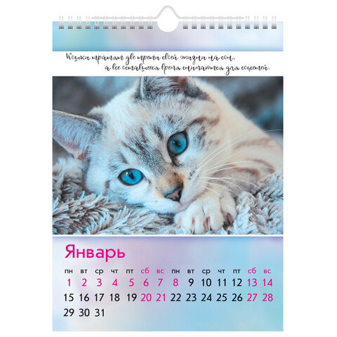Календарь настенный Hatber Мини Пушистые истории, 22х30см, с ригелем, 2024