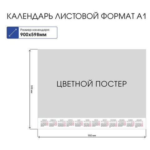 Календарь листовой А1 формата (900х600 мм). Выполнен на импортной высококачественной бумаге 3-кратного мелования 135 г/м2. Печать высококачественными красками обеспечивает естественную цветопередачу и эффектный внешний вид. Календари HATBER российского производства отпечатаны на современном высокотехнологичном оборудовании и соответствуют стандартам качества.