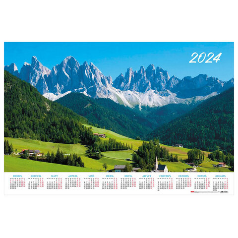 Календарь настенный Hatber Зеленая долина, 90х60см, 2024