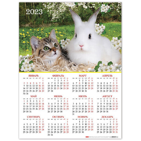 Календарь настенный листовой 2023 г., формат А2 (45х60 см), 'Год Кота и Кролика', HATBER, Кл2_27121
