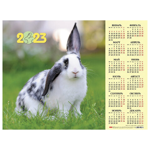 Календарь настенный листовой 2023 г., формат А2 (60х45 см), 'Год Кролика 2', HATBER, Кл2_28014