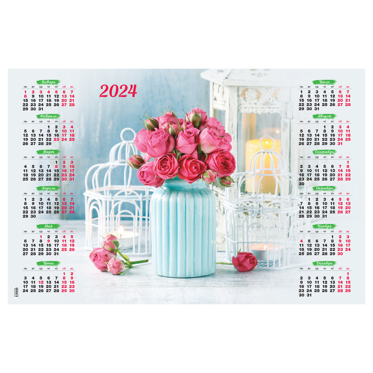 Календарь настенный листовой А1, OfficeSpace 'Букет', 2024г.