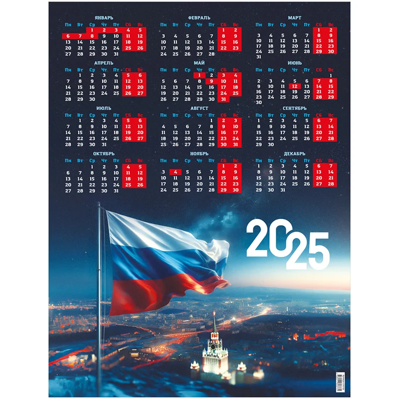 Календарь настенный листовой А2, BG 'Россия', 2025г