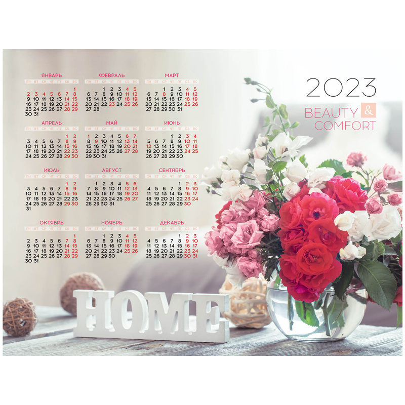 Календарь настенный листовой А2, OfficeSpace 'Beauty&Comfort', 2023 г.