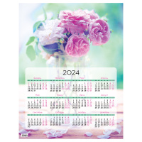 Календарь настенный листовой А2, OfficeSpace 'Красивый букет', 2024г.