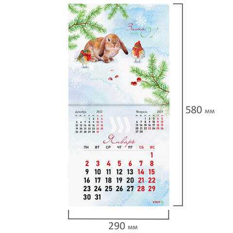 Календарь настенный перекидной 2023 г., 12 листов, 29х29 см, 'СИМВОЛ ГОДА', STAFF, 114275