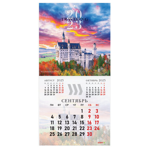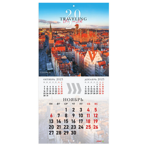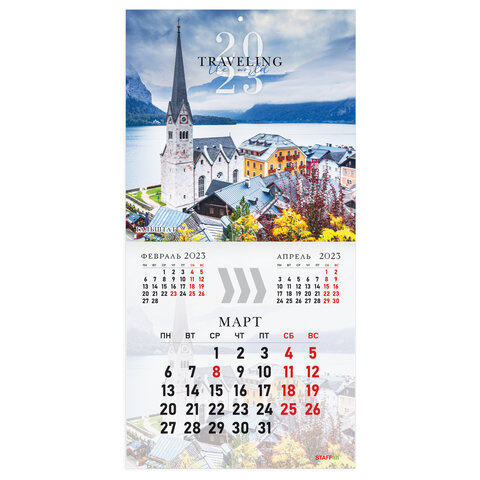 Календарь настенный перекидной 2023 г., 12 листов, 29х29 см, 'TRAVELING', STAFF, 114281