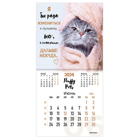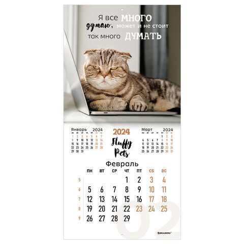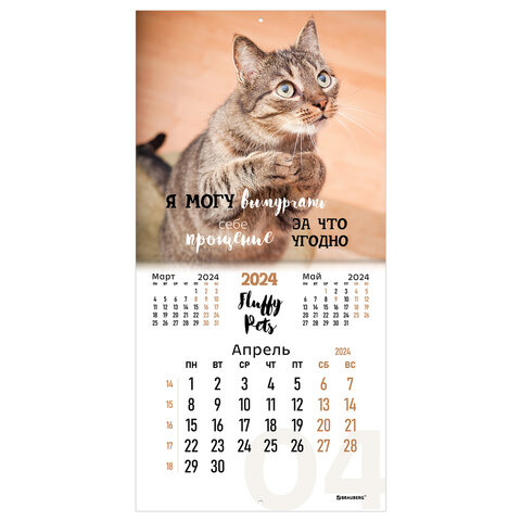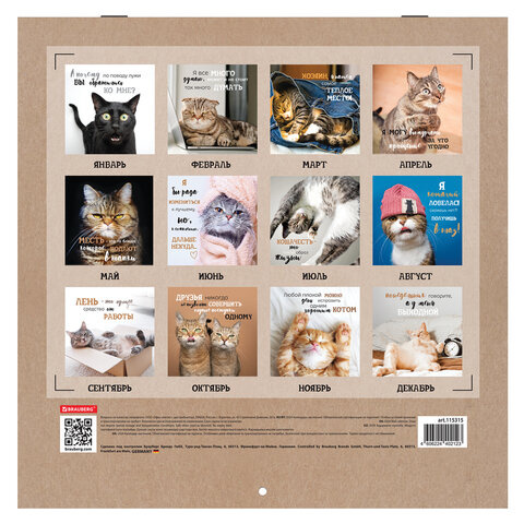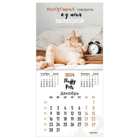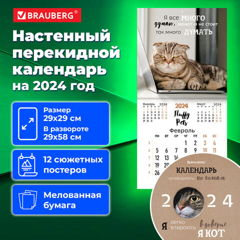 Календарь настенный перекидной на 2024 г., BRAUBERG, 12 листов, 29х29 см, 'Кошечки', 115315