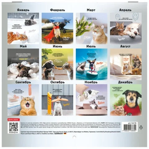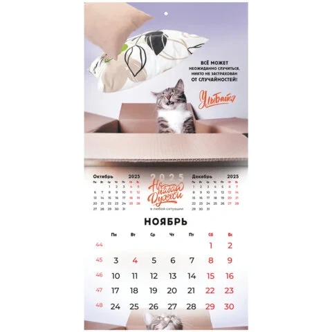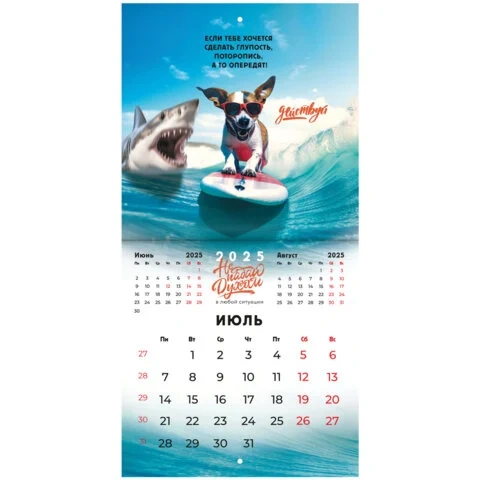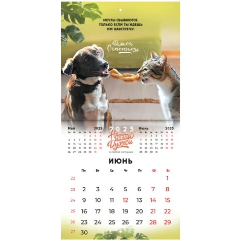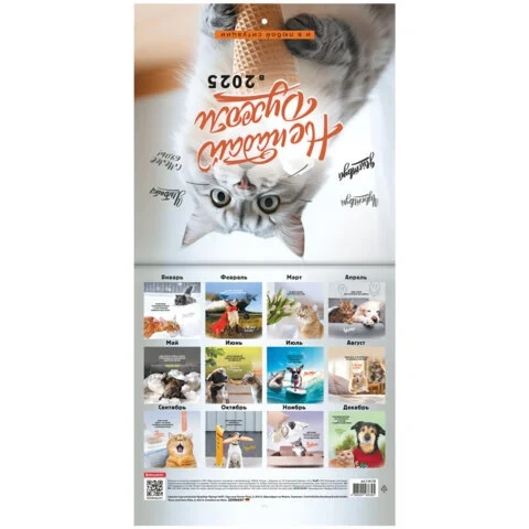 Настенный календарь на скрепке, содержит 12 страниц. Яркая, красочная картинка дополнена календарной сеткой на месяц. Блок календаря напечатан на мелованной бумаге плотностью 130 г/м2. Оригинальная обложка изготовлена из мелованной бумаги плотностью 230 г/м2. Размер – 22,5х22,5 см. Дополнен отверстием для удобства крепления. Поставляется в индивидуальной упаковке (полибэг) с европодвесом и прокладкой из гофрокартона, что создает товару дополнительную защиту.
