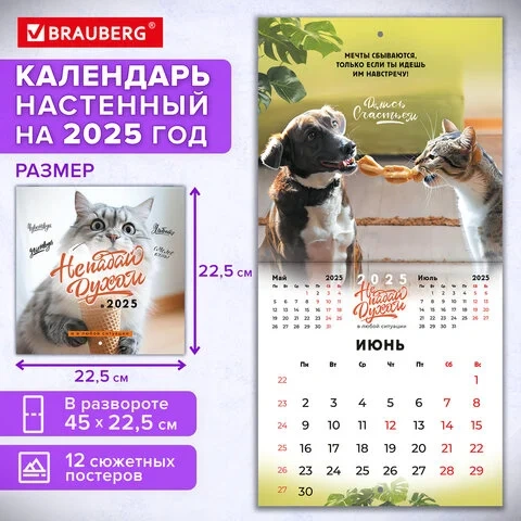 Календарь настенный перекидной на 2025 г., BRAUBERG, 12 листов, 22,5х22,5 см, МИНИ, 'Не падай духом'
