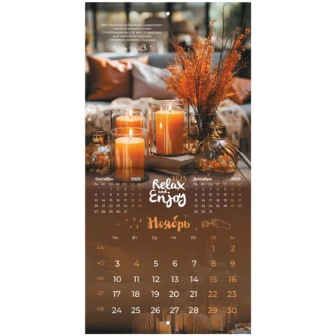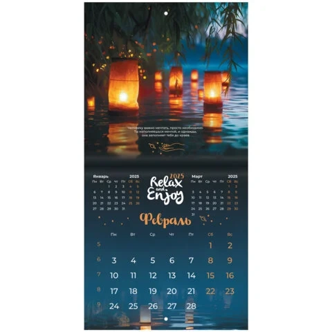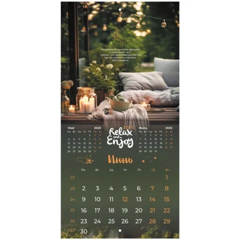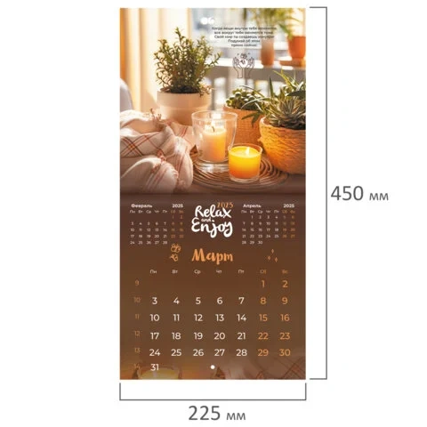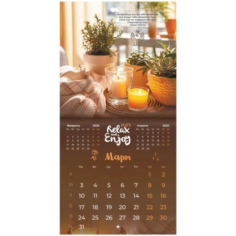Календарь настенный перекидной на 2025 г., BRAUBERG, 12 листов, 22,5х22,5 см, МИНИ, 'Relax', 116177