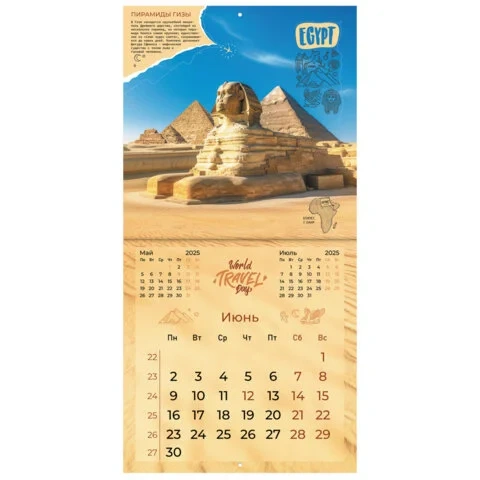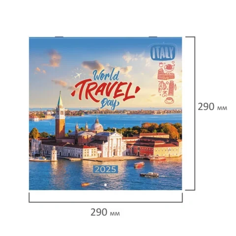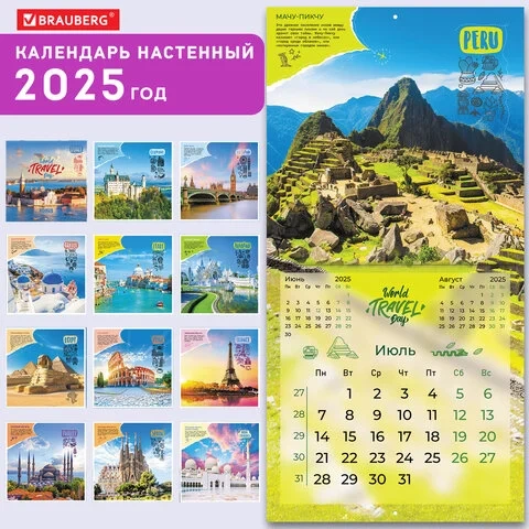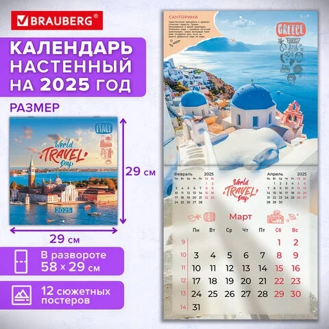 Календарь настенный перекидной на 2025 г., BRAUBERG, 12 листов, 29х29 см, 'Чудеса света', 116162