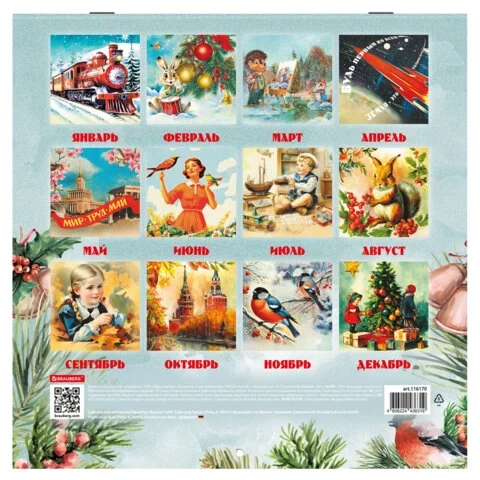 Календарь настенный перекидной на 2025 г., BRAUBERG, 12 листов, 29х29 см, 'Советские открытки', 1161