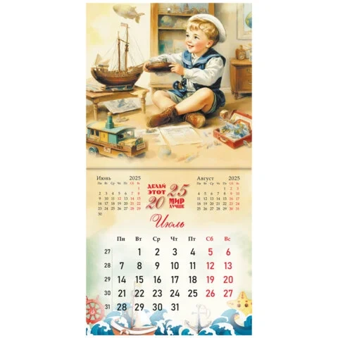 Яркая, красочная картинка дополнена календарной сеткой на месяц. Содержит 12 листов. Блок календаря напечатан на мелованной бумаге плотностью 130 г/м2. Оригинальная обложка изготовлена из мелованной бумаги плотностью 230 г/м2 с матовой ламинацией. Размер – 29х29 см, в развороте – 29х58 см. Дополнен отверстием для удобства крепления. Поставляется в индивидуальной упаковке (полибэг) с европодвесом и прокладкой из гофрокартона, что создает товару дополнительную защиту.