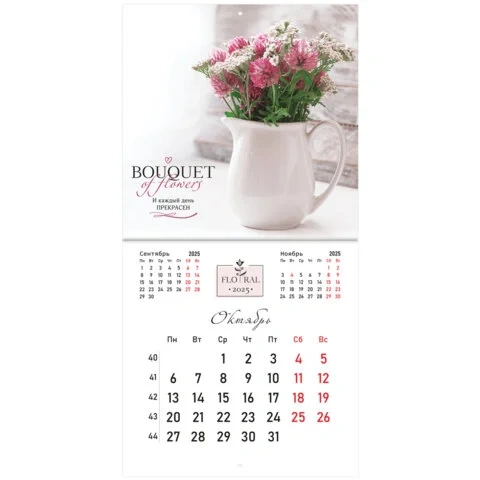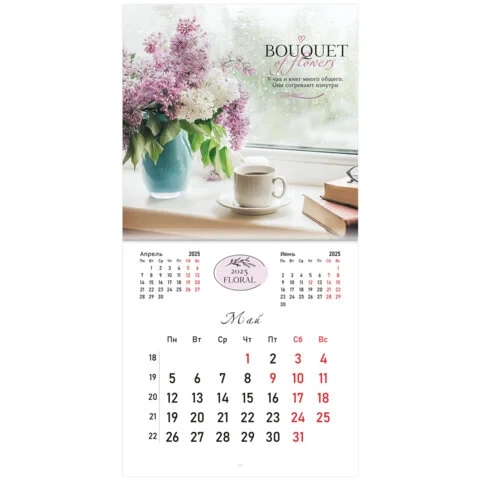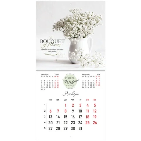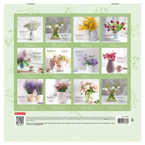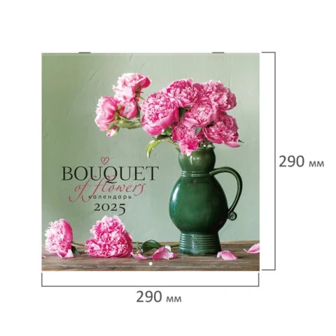 Календарь настенный перекидной на 2025 г., BRAUBERG, 12 листов, 29х29 см, 'Цветы', 116167