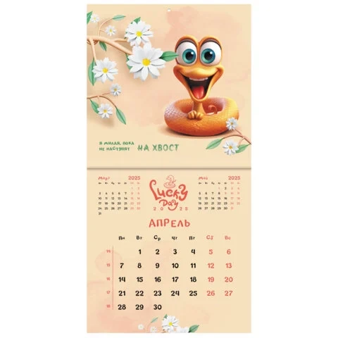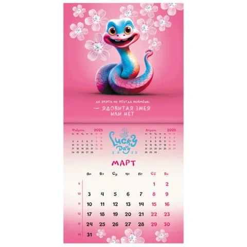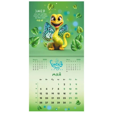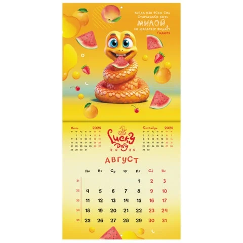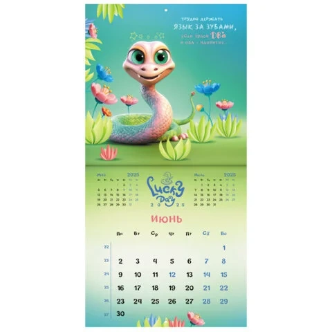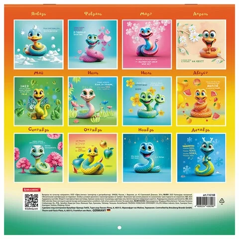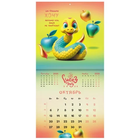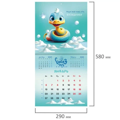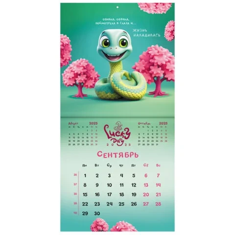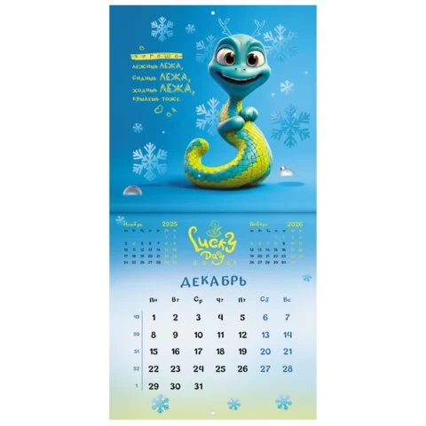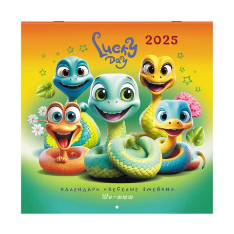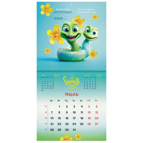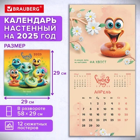 Календарь настенный перекидной на 2025 г., BRAUBERG, 12 листов, 29х29 см, 'Весёлые змейки', 116168