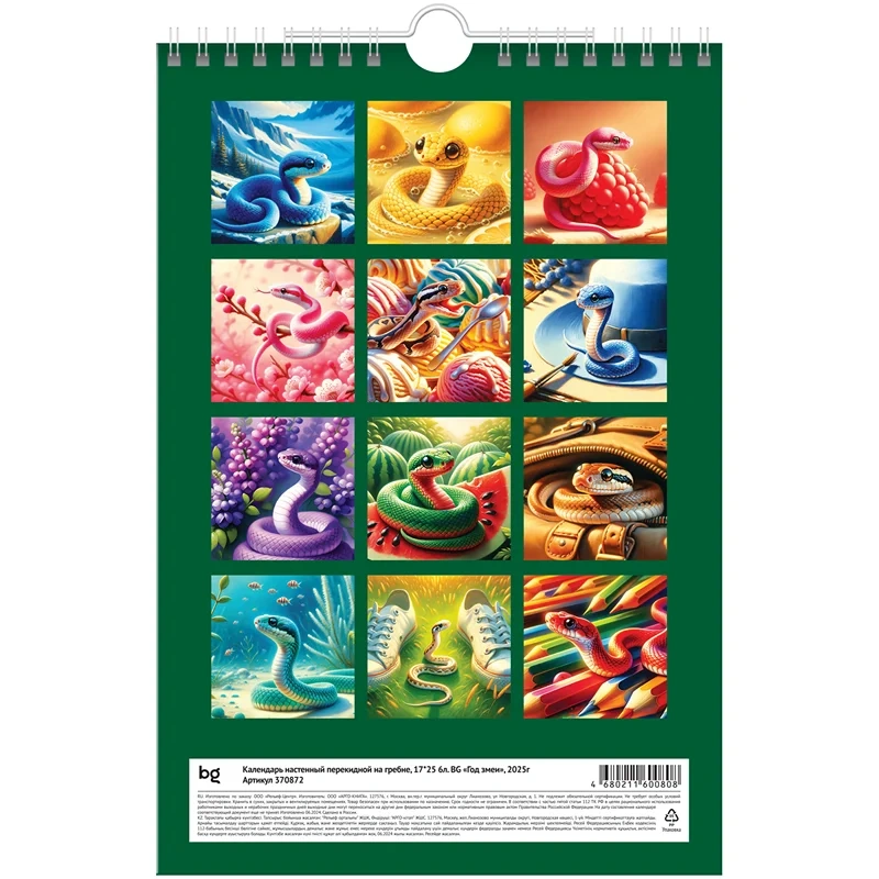 Календарь настенный перекидной на гребне, 17*25 6л. BG 'Год змеи', 2025г.