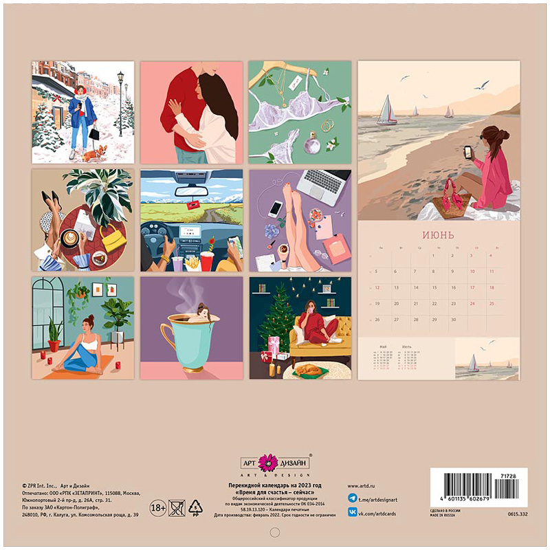 Календарь настенный перекидной на скрепке, 29*29 12л. Арт и Дизайн 'Время для счастья - сейчас', 202
