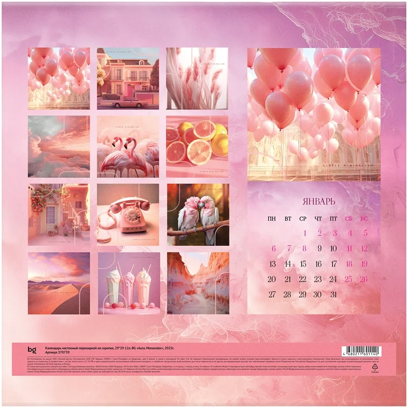 Календарь настенный перекидной на скрепке, 29*29 12л. BG 'Aura. Monocolor', 2025г.