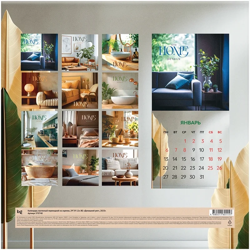 Календарь настенный перекидной на скрепке, 29*29 12л. BG 'Домашний уют', 2025г.