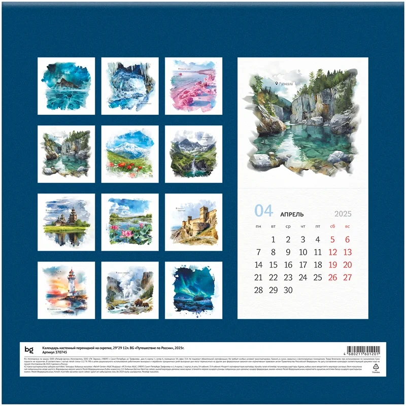 Этот календарь станет не только практичным помощником для планирования важных дел, но и оригинальным подарком для друзей и коллег. Превратите 2025 год в незабываемое путешествие по России с календарем BG.