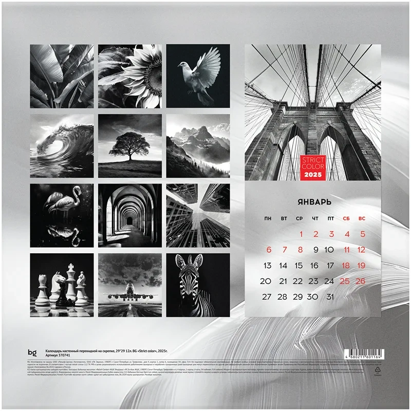 Этот календарь станет не только практичным помощником для планирования важных дел, но и оригинальным подарком для друзей и коллег. Сделайте 2025 год незабываемым с календарями BG.