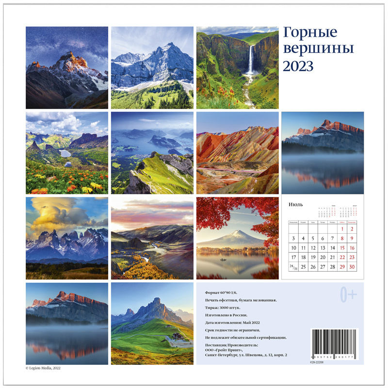 Календарь настенный перекидной на скрепке, 29*29 12л. Грейт Принт 'Горные вершины', 2023г