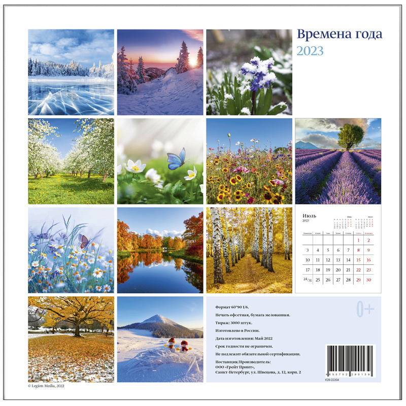 Календарь настенный перекидной на скрепке, 29*29 12л. Грейт Принт 'Времена года', 2023г