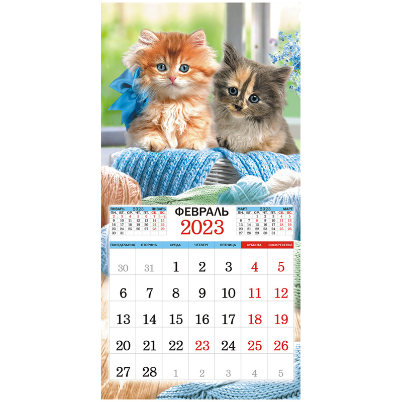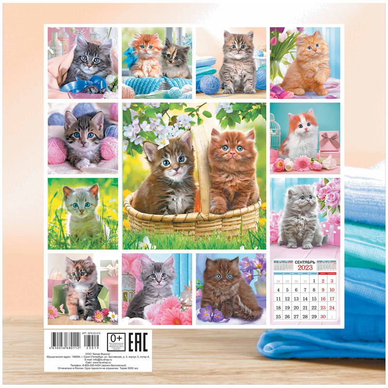 Календарь настенный перекидной на скрепке, 29*29 12л. ЛиС 'Котята. Пушистик с клубочком', 2023г