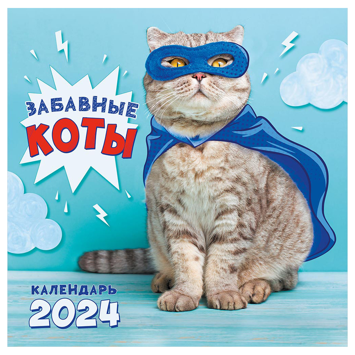 Календарь настенный перекидной на скрепке, 29*29 12л. ЛиС 'Забавные коты', 2024г