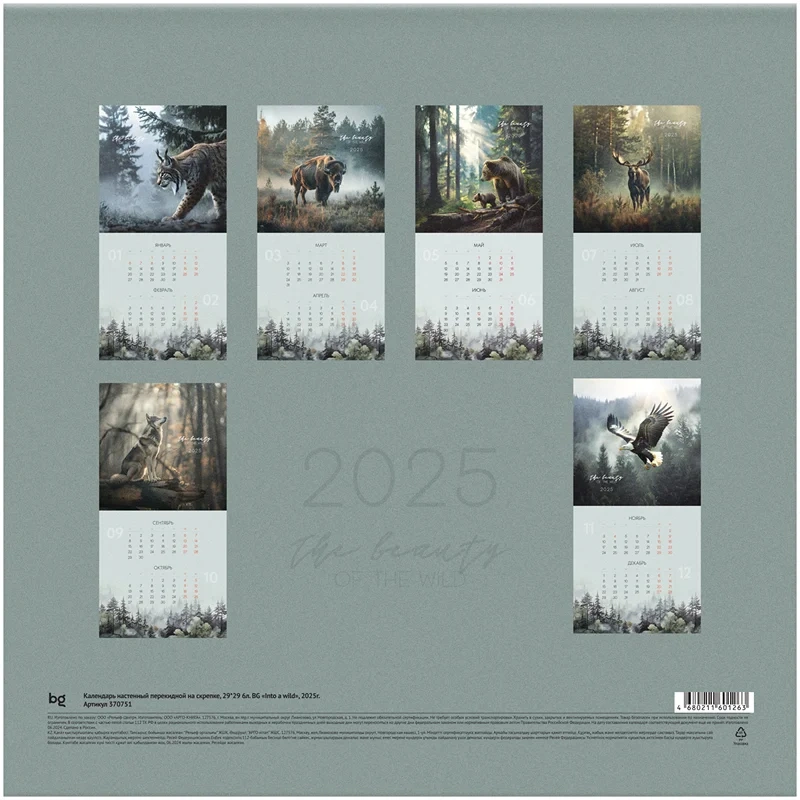 Настенный перекидной календарь на скрепке BG 'Into a wild' на 2025 год — это гармоничное сочетание практичности и эстетики, которое станет ярким акцентом интерьера. Размер составляет 29х29 см, что позволяет удобно разместить его в любом пространстве. Календарь на 6 листов, на каждом из которых представлены по 2 месяца, позволит с легкостью и удобством планировать свои дела в течение всего года.