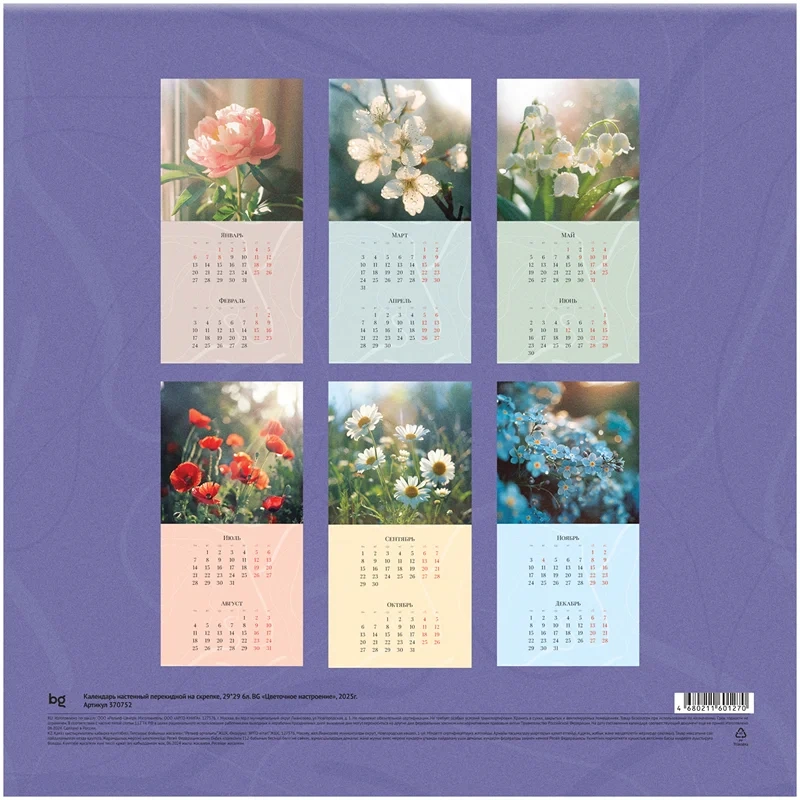 Календарь настенный перекидной на скрепке, 29*29 6л. BG 'Цветочное настроение', 2025г.