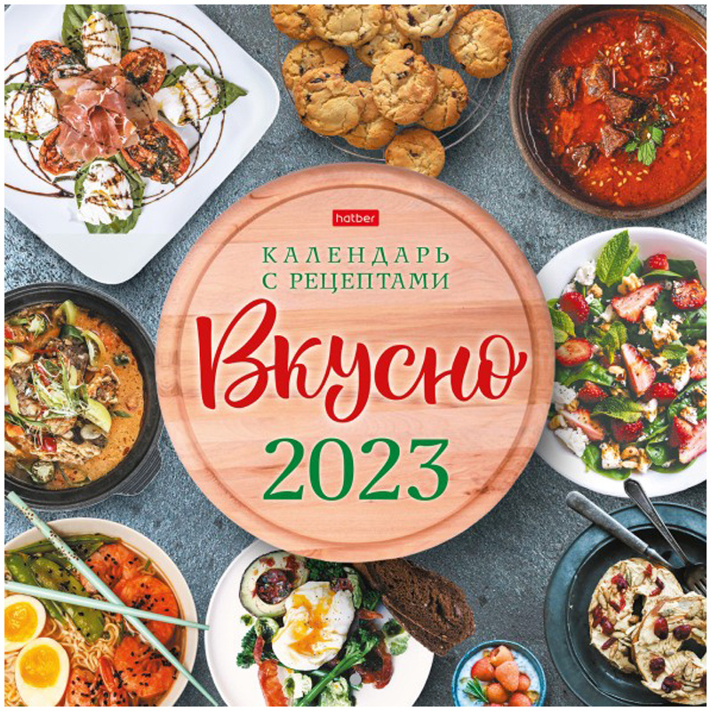 Календарь настенный перекидной на скрепке, 30*30 12 л. Hatber 'Стандарт' - Вкусно с рецептами, 2023г