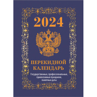 Календарь настол,перек,2024,Гос.симв.Вид2(син),офс,4 кр,100х140,НПК-42-24 Настольный перекидной календарь на 2024 год, 4-красочный, на офсетной бумаге, формат 100x140 мм, в индивидуальной упаковке (термопленка). Количество страниц: 320. Расстояние от края до верхнего прокола - 18 мм. Расстояние между проколами - 40 мм. Блок: бумага офсетная плотностью 60 г/м2. Печать блока в четыре краски. Цвет обложки: синий. Обложка: бумага мелованная плотностью 170 г/м2. Печать обложки в четыре краски. Отделка обложки - золотая фольга. В календаре отмечены государственные, профессиональные, православные праздники, памятные даты. Товар относится к ценовому сегменту 'эконом'. Имеет базовые характеристики и более простую упаковку. Отвечает основным требованиям потребления.