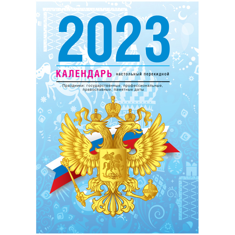 Календарь настольный перекидной OfficeSpace «Государственная символика» на 2023 год ? незаменимая вещь в жизни делового человека и отличный помощник для офиса. Размер вертикального календаря – 100?140 мм. Календарный блок из 160 листов изготовлен из газетной бумаги плотностью 45 г\\м2 с печатью в 1 краску в четырёх цветах. Верхняя и нижняя подложки изготовлены из картона плотностью 120 г/м2. Нижняя подложка имеет цветность в 1 краску, верхняя – полноцветная. Расстояние между внутренними краями отверстия – 4 см.