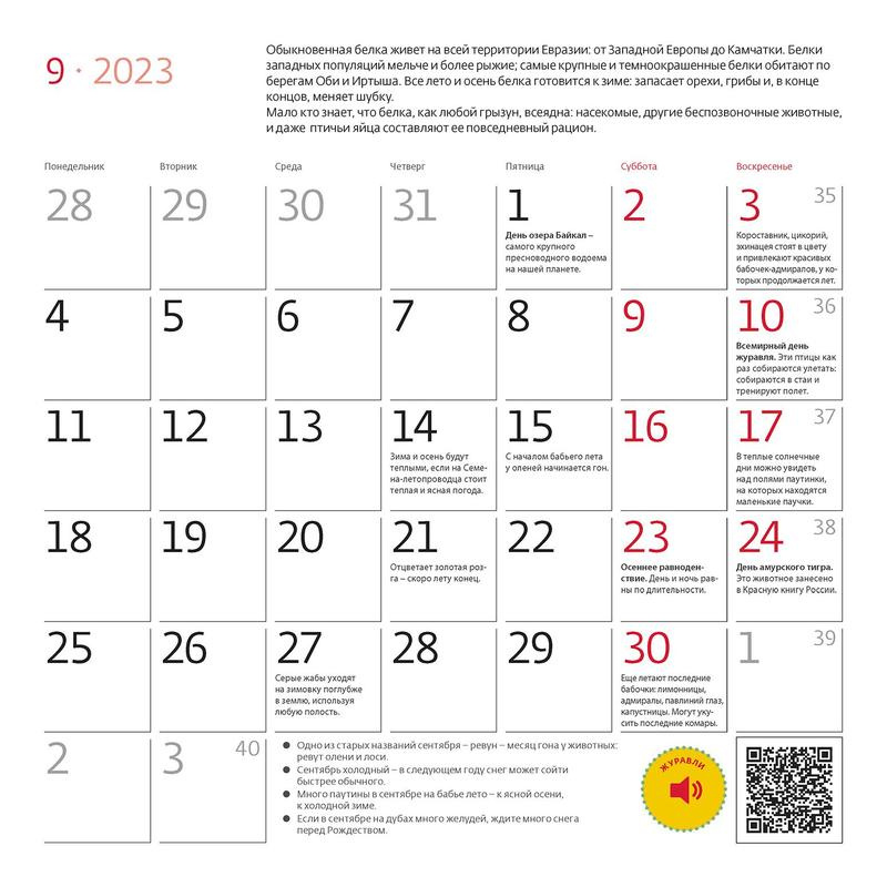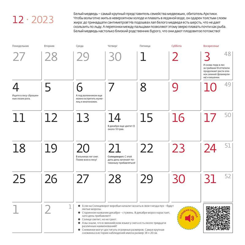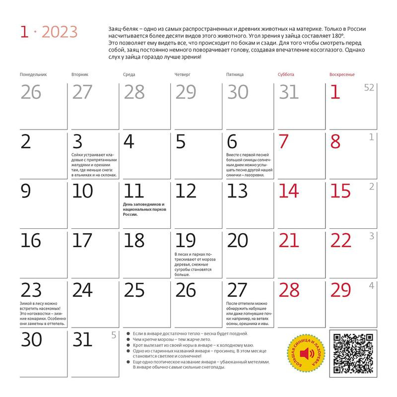 Календарь настенный, перекидной на 2023 год. Фото природы России. Комментарии природных явлений по временам года. QR код для прослушивания звуков природы и пения птиц