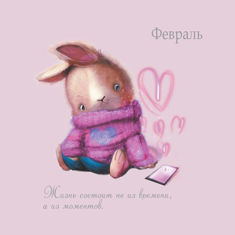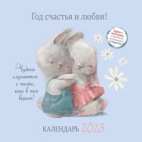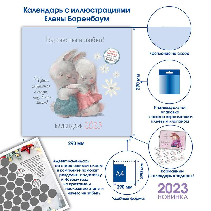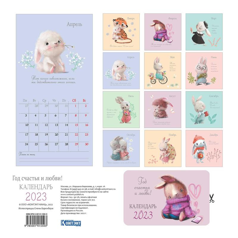 Календарь настенный, перекидной на 2023 год. Календарь с мимимишными кроликами — символом года. Иллюстрации художницы Елены Баренбаум. Календарь, посвященный счастью и любви