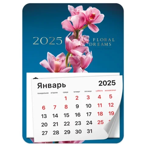Календарь отрывной на магните 2025, BRAUBERG, 130Х180мм, склейка, Орхидея, 116280