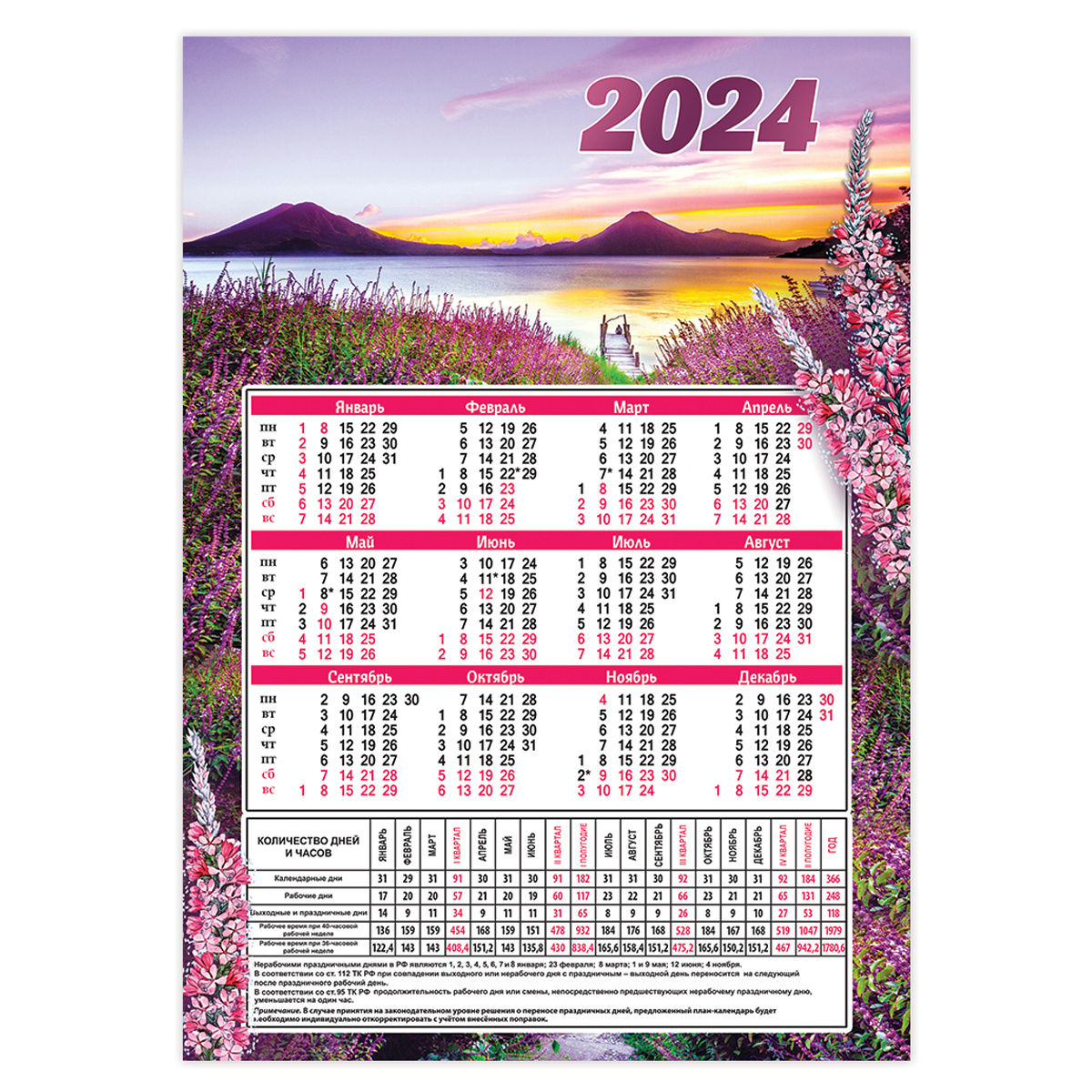 Календарь-табель ГК Горчаков 'Пейзажи' А4, 2024г, набор 40шт.