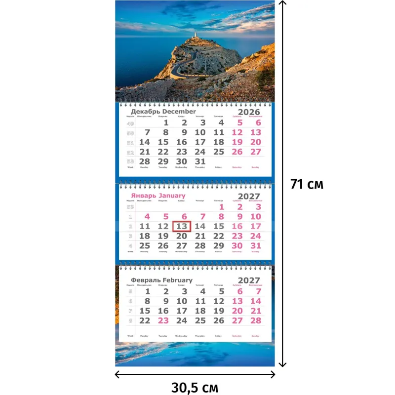 Календарь настенный 3-х блочный 2026 природа 30.5×78 смНастенный трёхблочный отрывной календар...