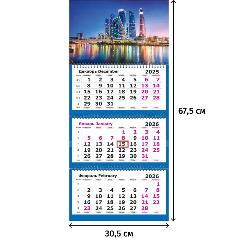 Календарь настенный 3-х блочный 2026 Москва 30.5×67.5 смНастенный трёхблочный отрывной ка...