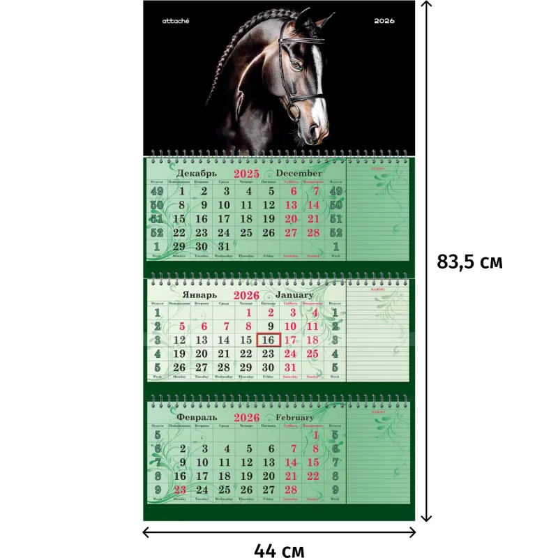 Календарь настенный трёхблочный Attache «Лошадь» 2026, размер 44×83.5 см, нас...