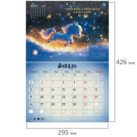 Календарь-планер настенный перекидной на 2026 г., BRAUBERG, 12 листов, 29,5х21,3 см, 'Magic', 116951