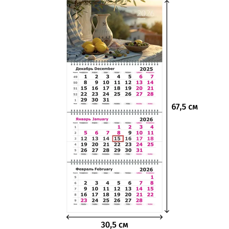 Календарь настенный 3-х блочный 2026 Трио Стандарт, 305х675, Офис важное